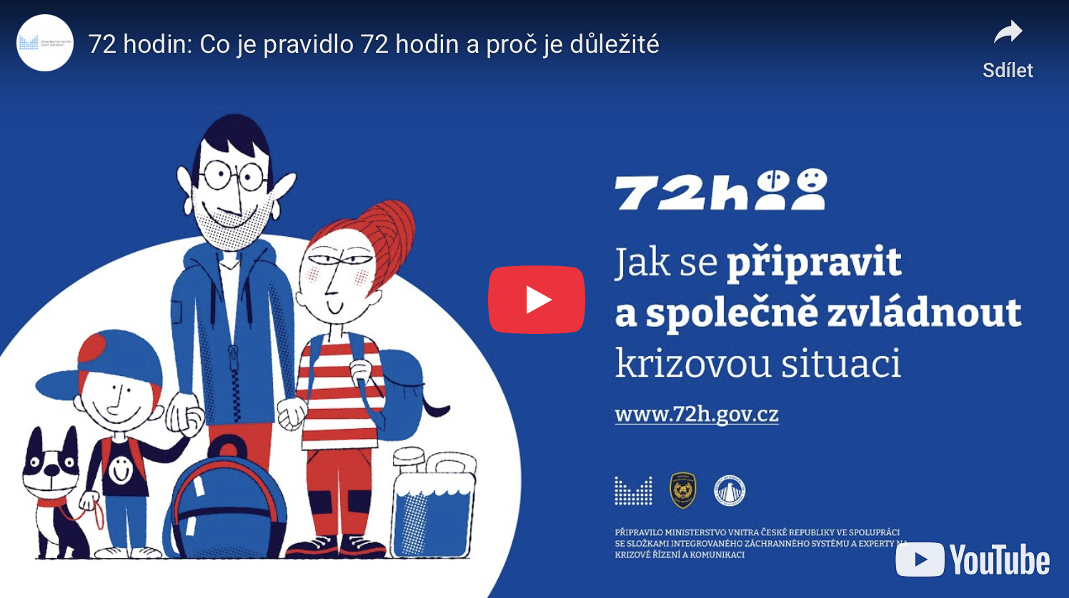 Pravidlo 72 hodin říká, že v krizové situaci, kdy například vypadne elektřina nebo přestane téct voda, by měl každý zvládnout první tři dny bez pomoci záchranných složek – jen s tím, co má doma. Pokud se včas připravíme, pomůžeme tím i ostatním. Záchranné složky se pak mohou soustředit na pomoc lidem, kteří jsou v přímém ohrožení života.