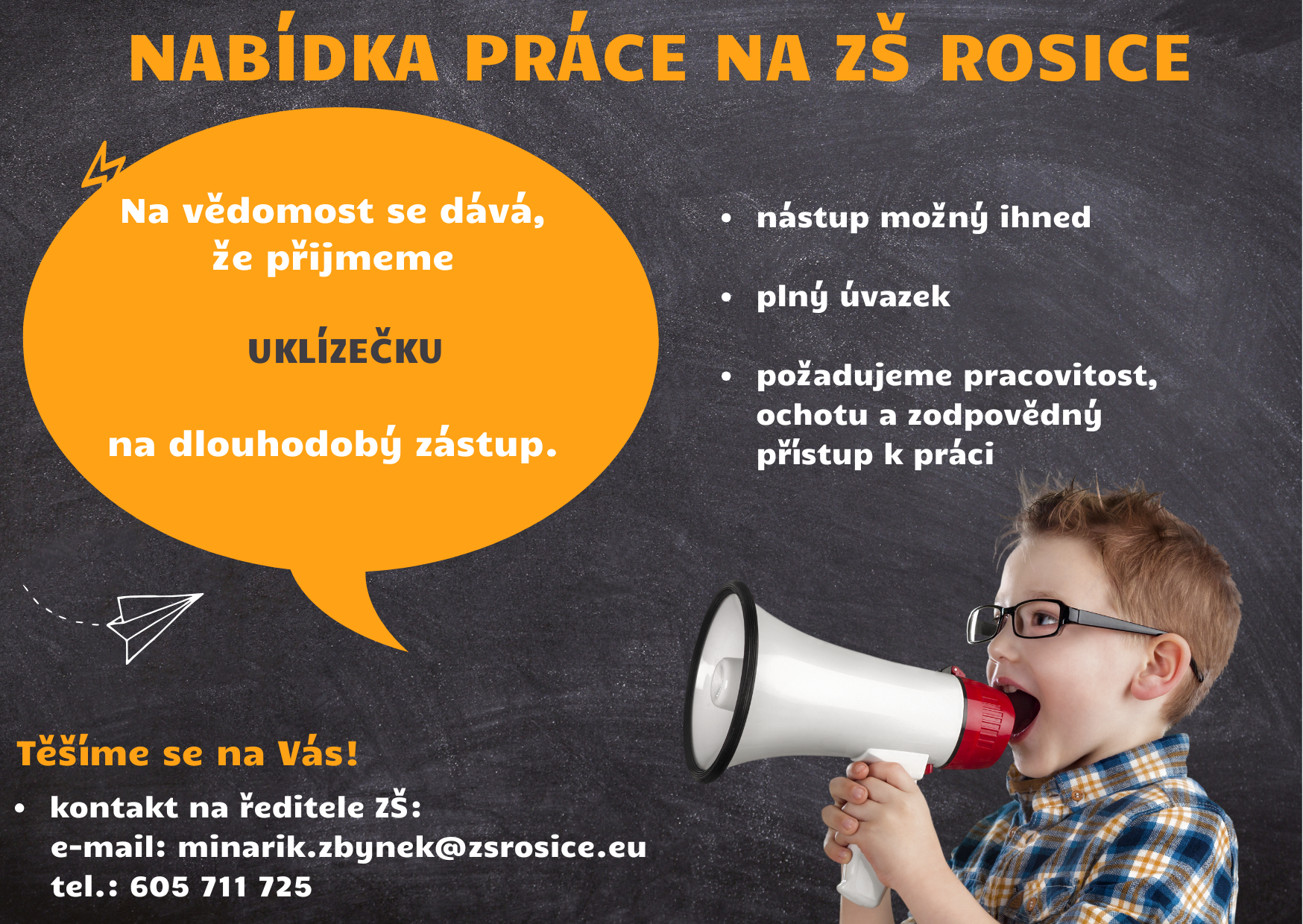 Volná místa: Nabídka práce - uklízeč/ka na ZŠ Rosice